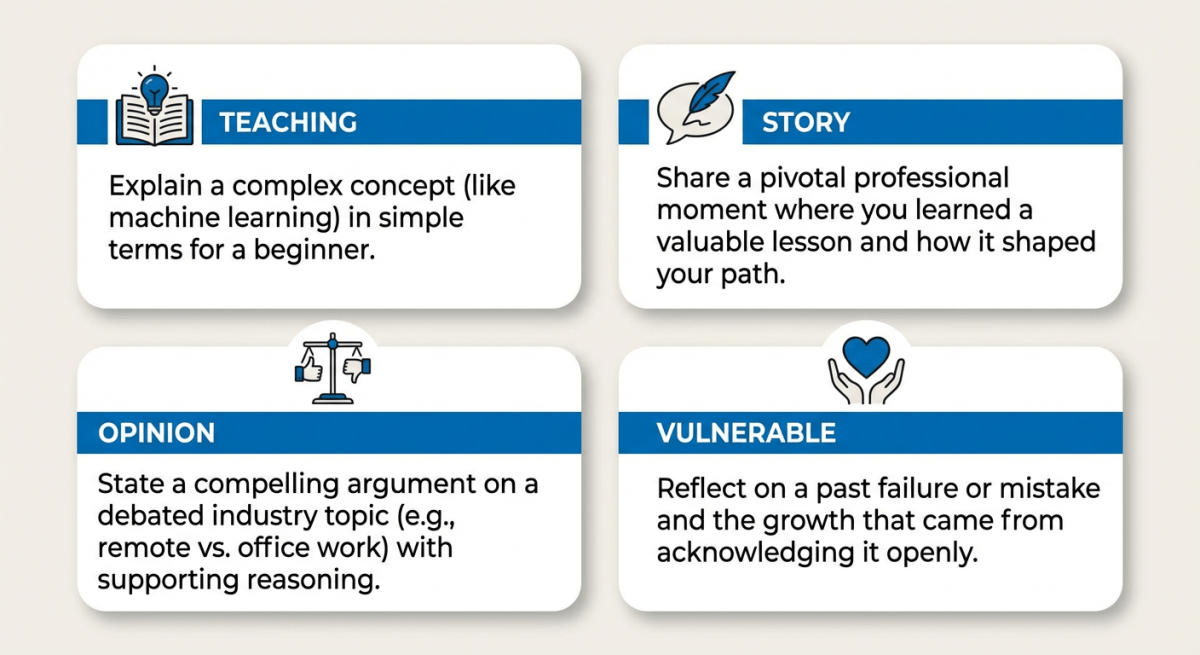 Keep your voice memo app one tap away. When an insight hits, capture it in thirty seconds. Don't worry about completeness. You're saving the spark, not writing the post.